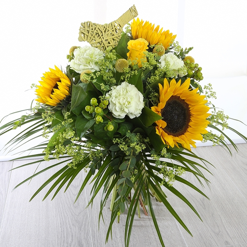 Joy is our bright and beautiful bouquet, containing fresh flowers including Sunflowers, Carnations and Rose.